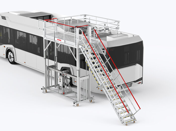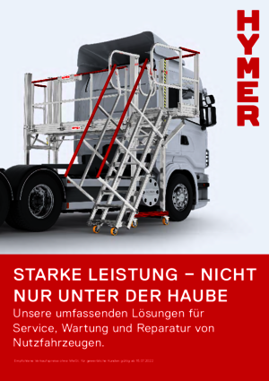 Unsere Steiglösungen für Service, Wartung und Reparatur von Nutzfahrzeugen setzen Maßstäbe. HYMER-Steigtechnik bietet eine breite Palette an Arbeitsbühnen, Leitern und Plattformen, die nicht nur Ruhezeiten minimieren, sondern auch höchste Ergonomie und Sicherheit gewährleisten. Von Fahrzeugen wie LKWs, Bussen bis hin zu Aufliegern – entdecken Sie unsere Steigtechnikprodukte für die Fahrzeugbranche.