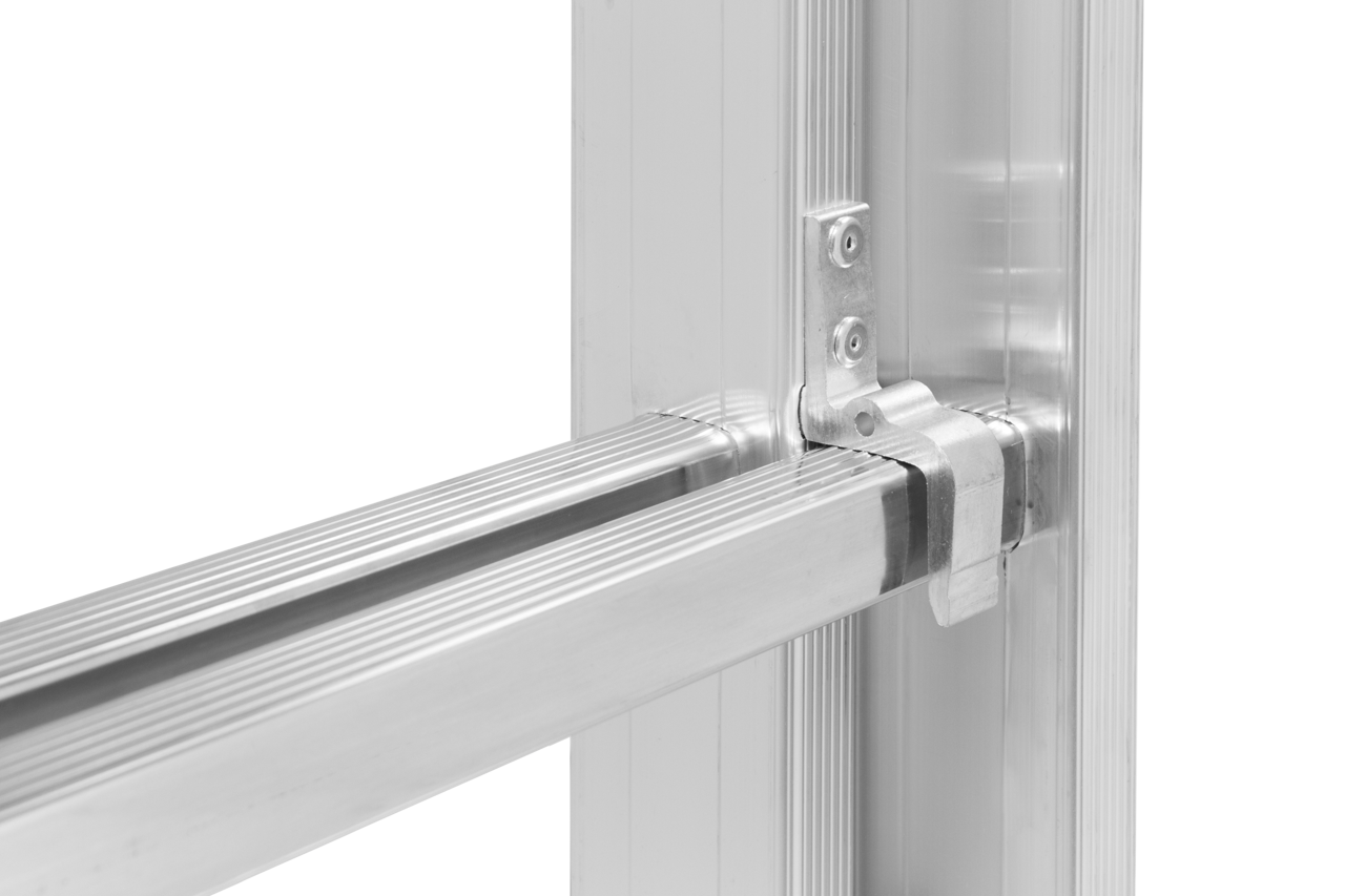 - Note: For TRBS-compliant use of rung ladders as a workplace, appropriate accessories such as hook-in steps (folding universal ladder step) are to be used