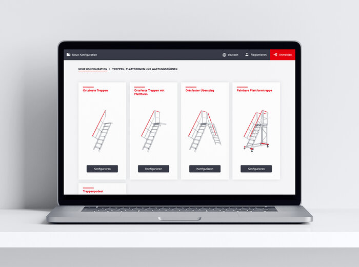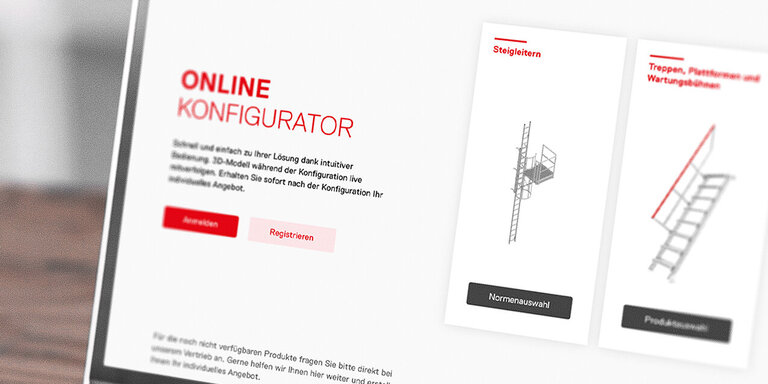 Ob ortsfeste Steigleiteranlage, Treppen, Plattformen oder Arbeits- und Wartungsbühnen: Mit unserem Online-Konfigurator konfigurieren Sie schnell und einfach individuelle Steiglösungen.