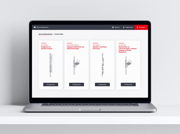 Mit unserem Konfigurator lassen sich standardisierte, hochwertige Steigtechnikprodukte nach Ihren Wünschen komfortabel konfigurieren. Der Online-Konfigurator überprüft alle Eingaben auf Norm-Konformität. So können Sie sich stets sicher sein, dass aktuelle Vorgaben der relevanten Norm berücksichtigt werden.