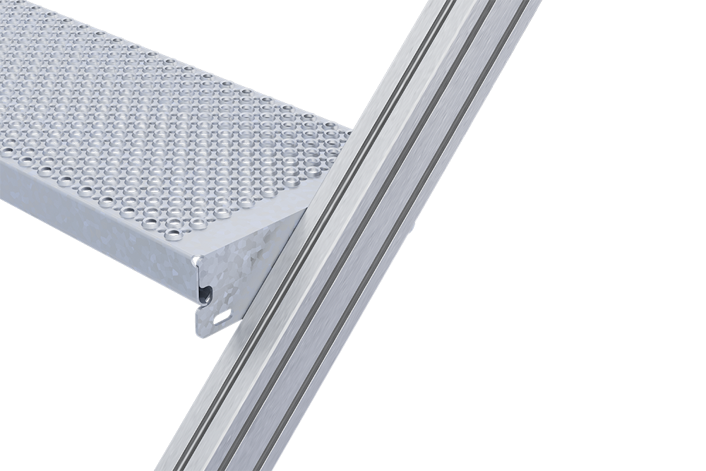 - Hinweis: Äußere Treppenbreite: Stufenbreite +155 mm bei einseitigem Geländer, Stufenbreite +230 mm bei beidseitigem Geländer