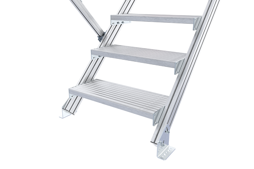- Stufentiefe: 45°-Neigungswinkel = 250 mm, 60°-Neigungswinkel = 200 mm