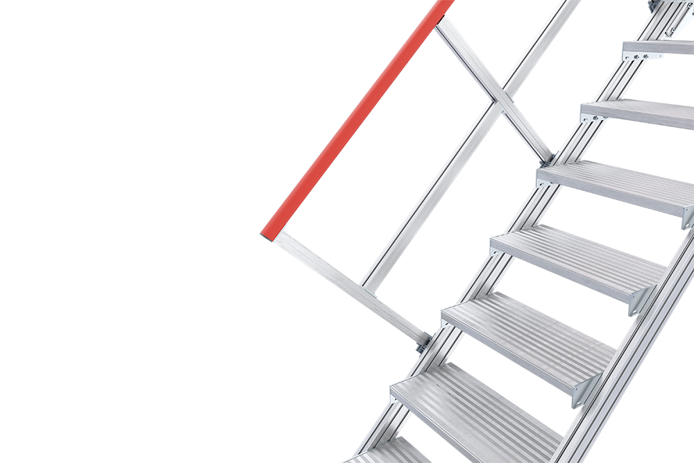 - Mit einseitigem Handlauf an der Treppe und Plattformgeländer