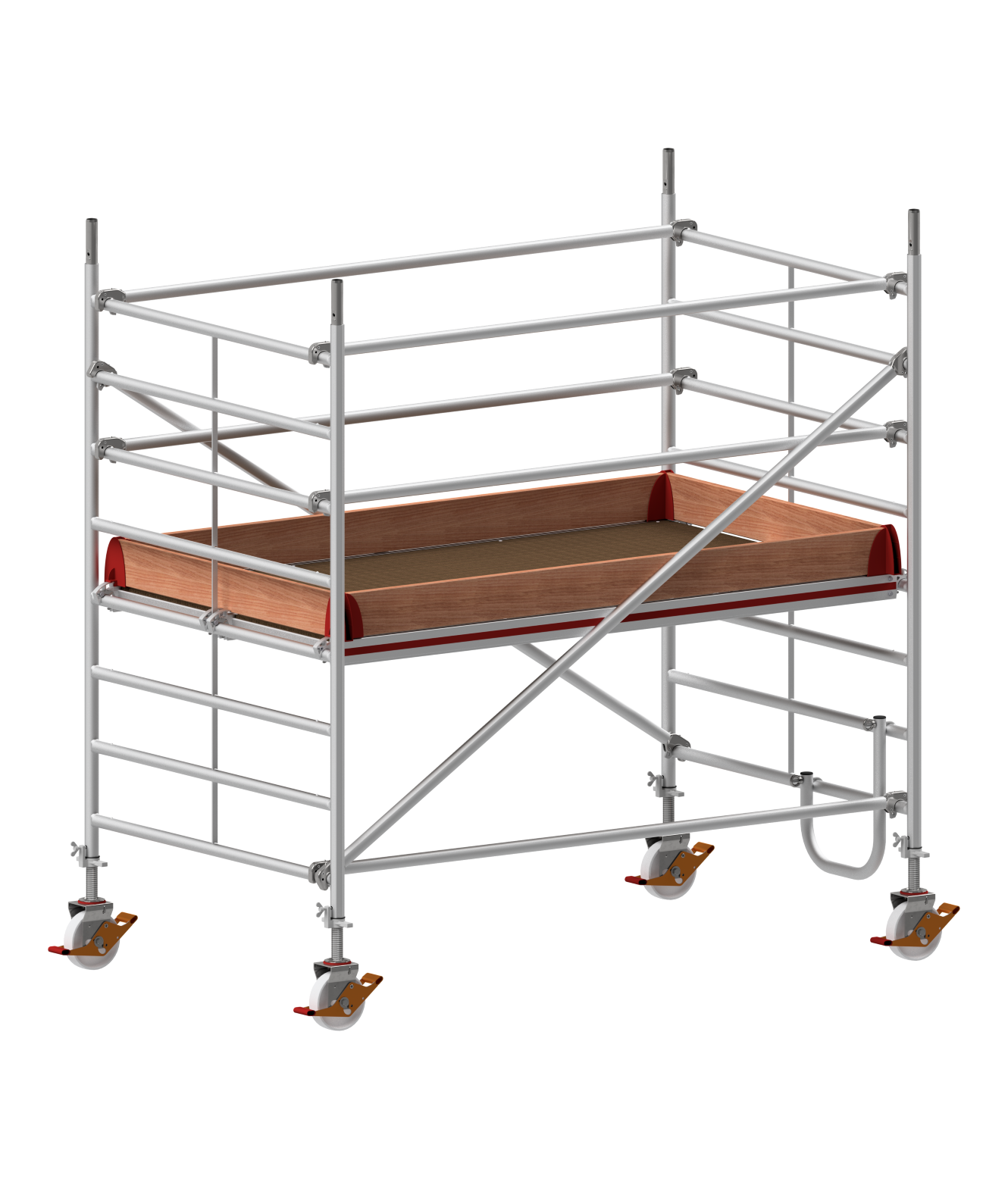 - Rutschsicherer Belag auf Bühnen und manueller Sicherheitshaken für sicheres Auf- und Abbauen