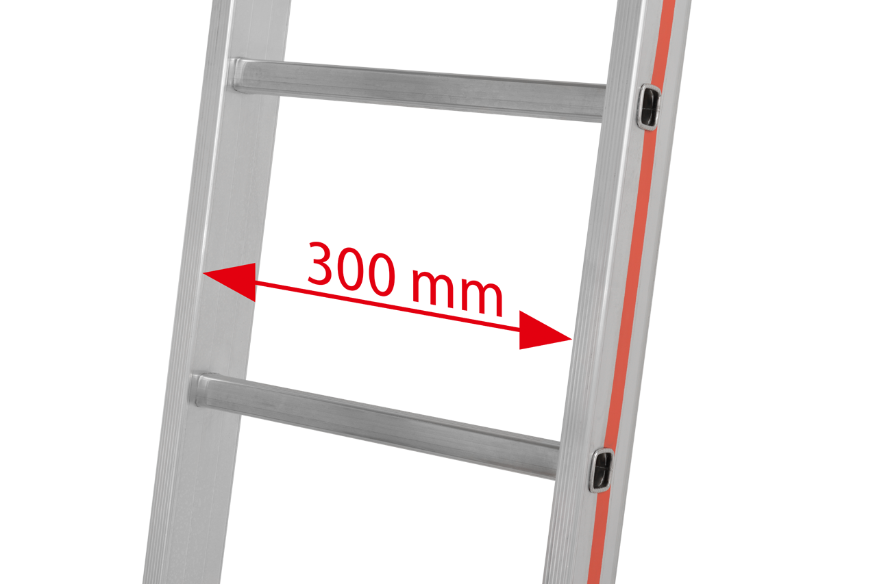 - Hinweis: Zur TRBS-konformen Verwendung als Arbeitsplatz ist bei Sprossenleitern entsprechendes Zubehör wie Einhängetritte (Universal-Leitertritt klappbar) zu verwenden