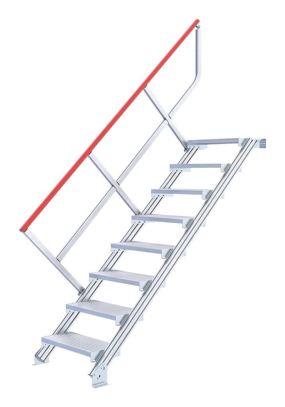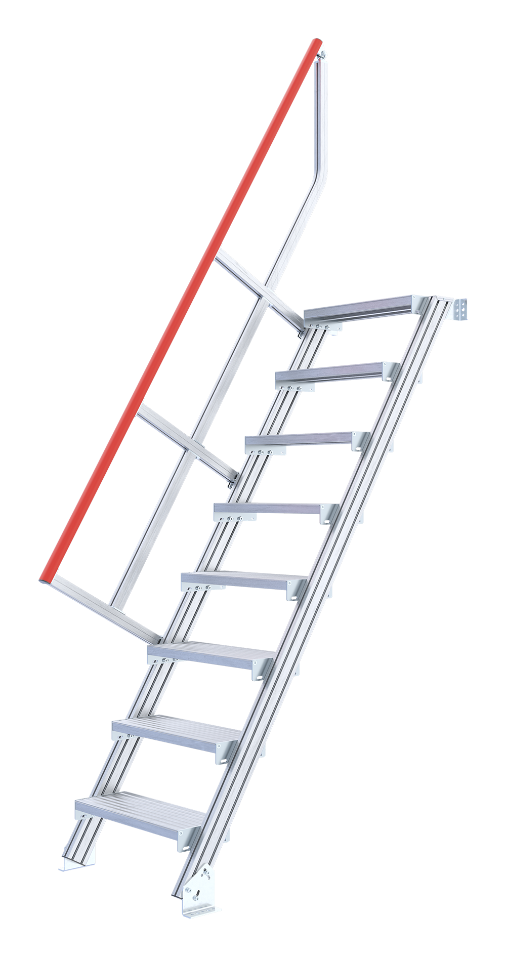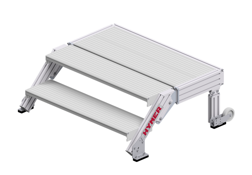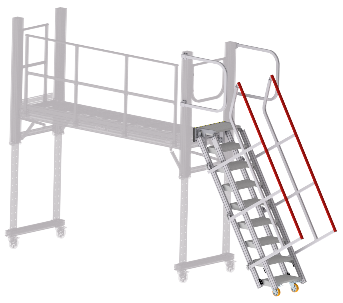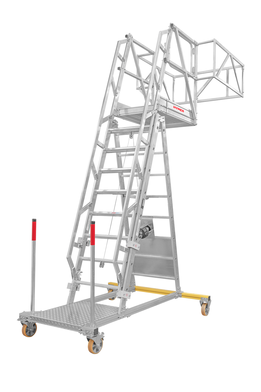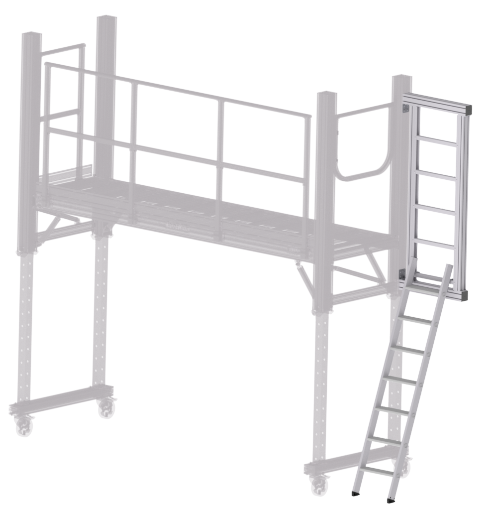 Plattformleiter R13 mit Kipprollen und langem Handlauf
