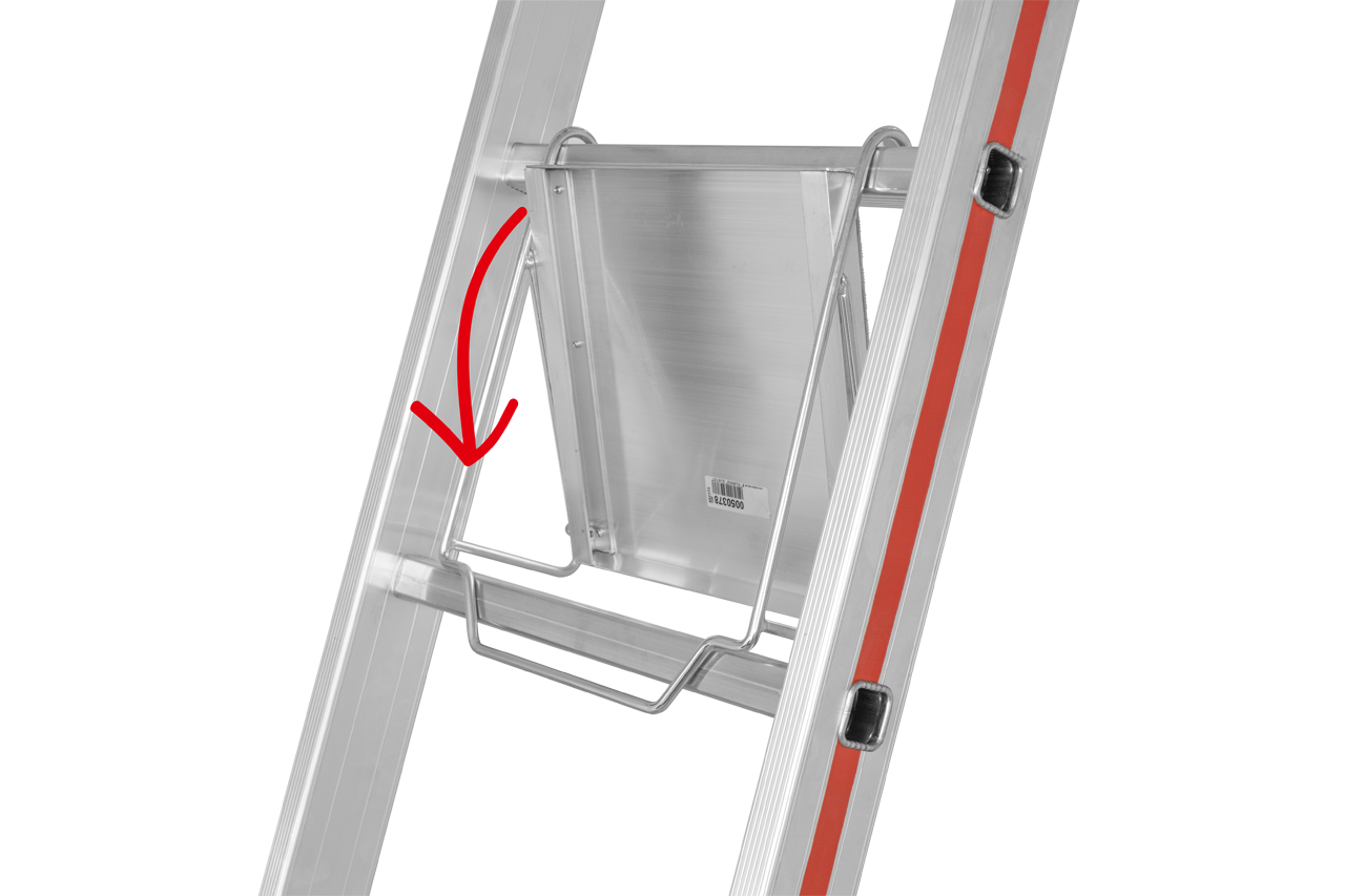 - Durch den hochklappbaren Tritt ist ein sicheres Besteigen der Leiter gewährleistet