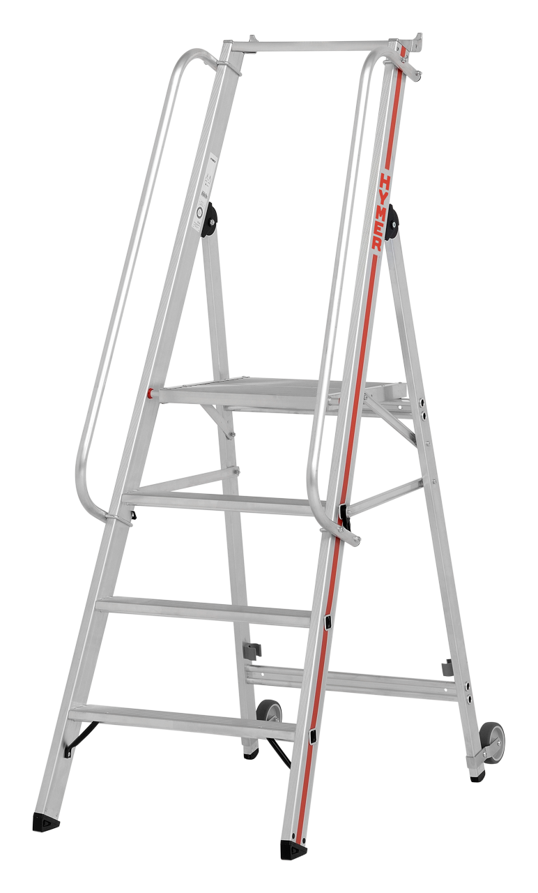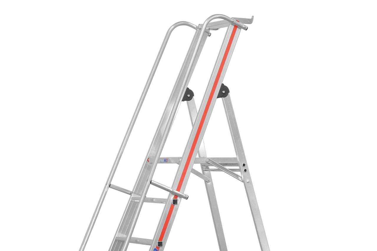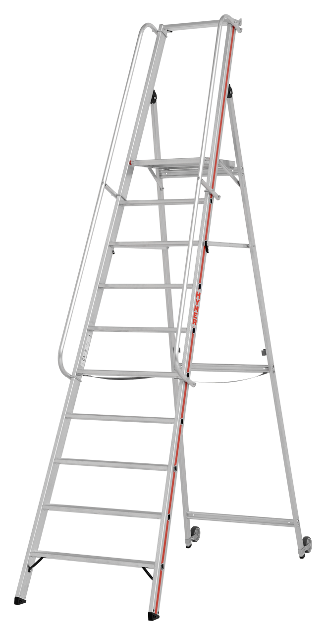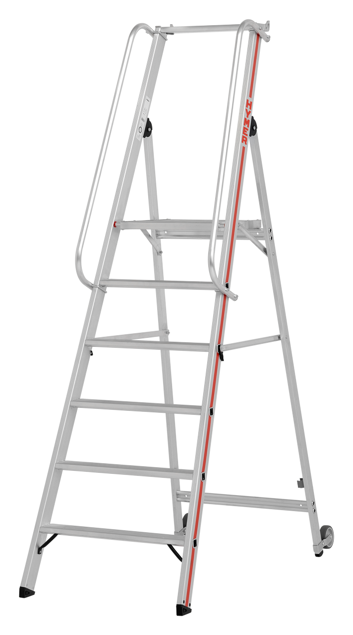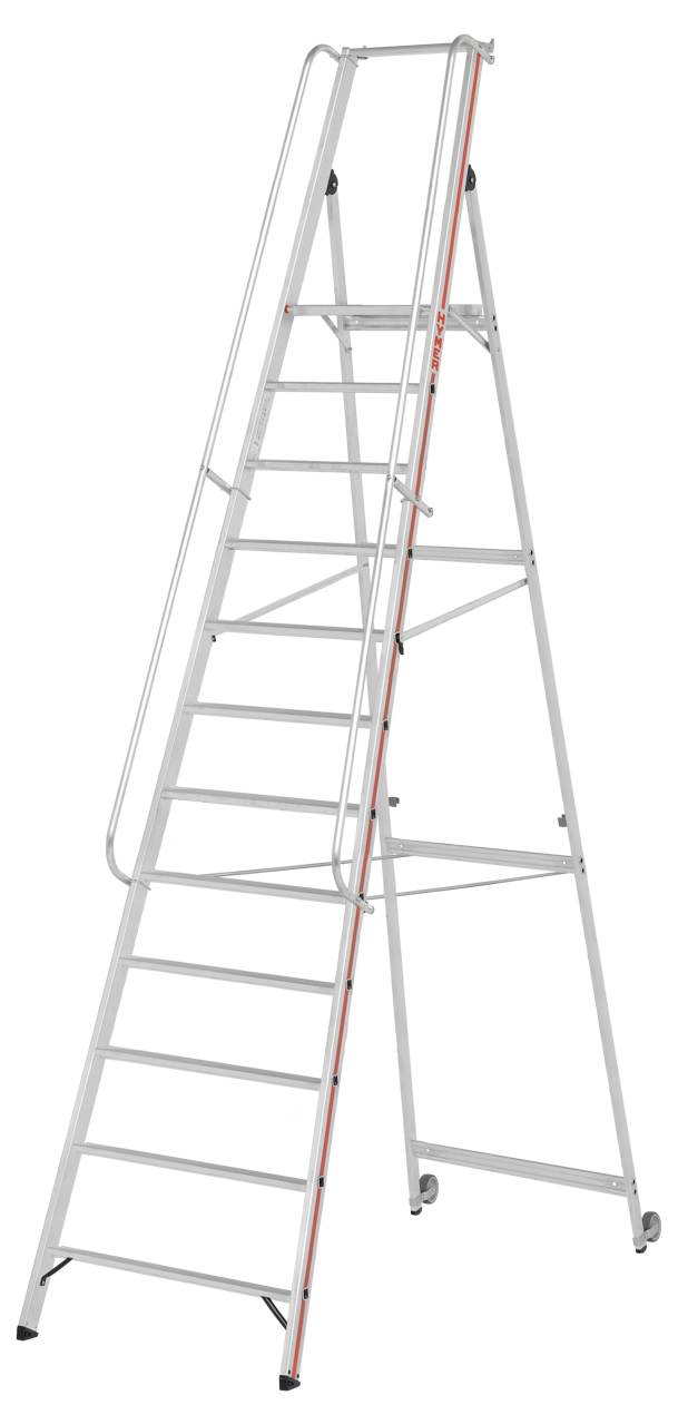 Plattformleiter mit Kipprollen und langem Handlauf
