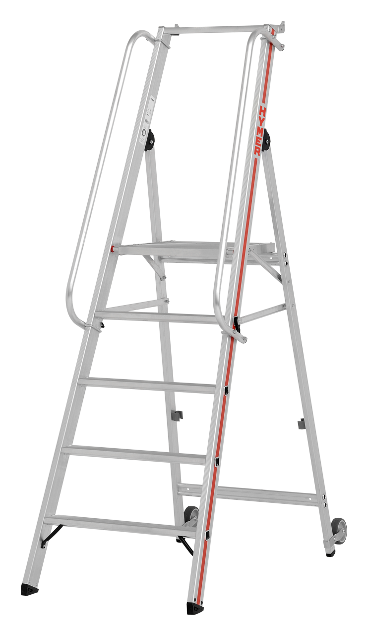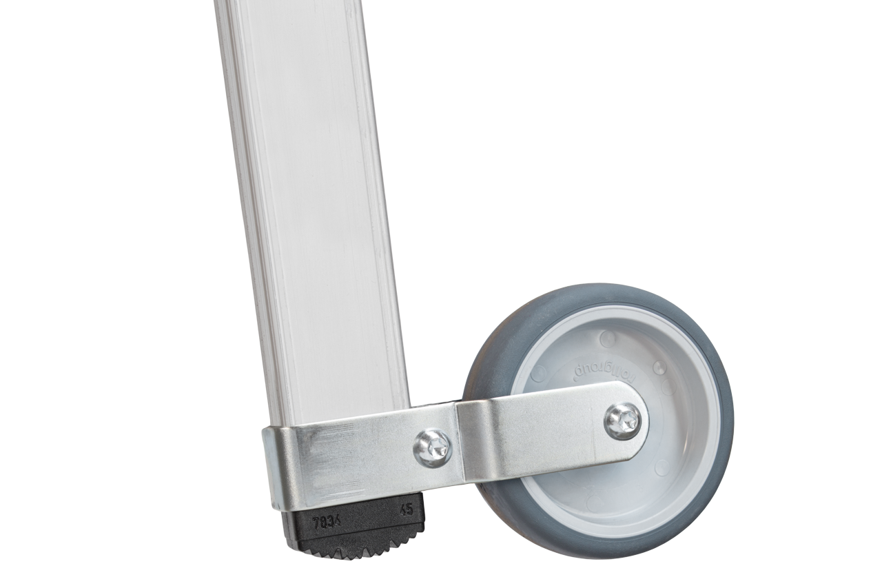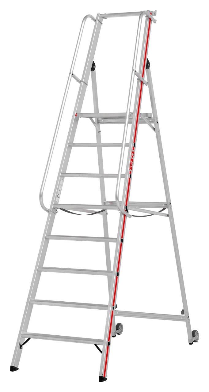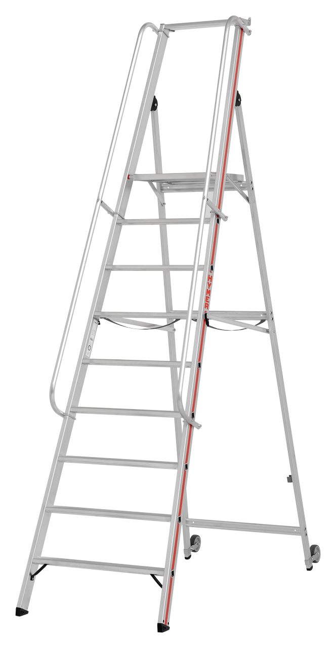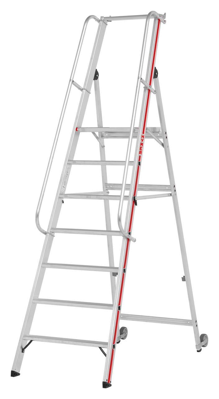 Plattformleiter mit Kipprollen und langem Handlauf