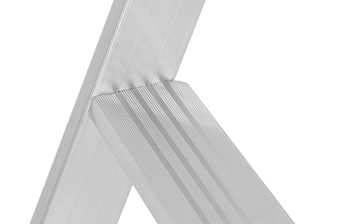 - Hohe Robustheit durch verwindungsstabile, verbördelte Holm-Stufen-Verbindung
