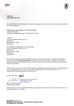 Schweißzertifikat EN ISO 3834-3:2005