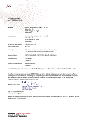 Schweißzertifikat EN 1090-3:2019-04