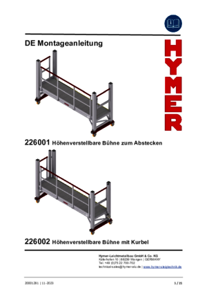 Falls Sie eine Gebrauchsanweisung zu einem unserer Steigtechnikprodukte hier nicht gefunden haben, schreiben Sie uns einfach eine E-Mail an: ac.lg@hymer-alu.de Wir senden Ihnen schnellstmöglich die gewünschte Anleitung zu.